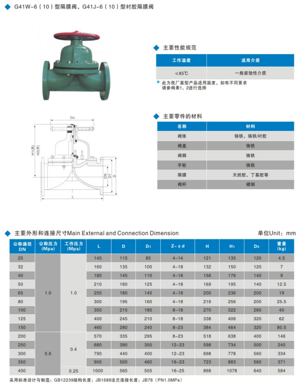 1、本閥由閥體、閥蓋、閥桿、閥瓣、隔膜、其它驅(qū)動(dòng)零件等組成。