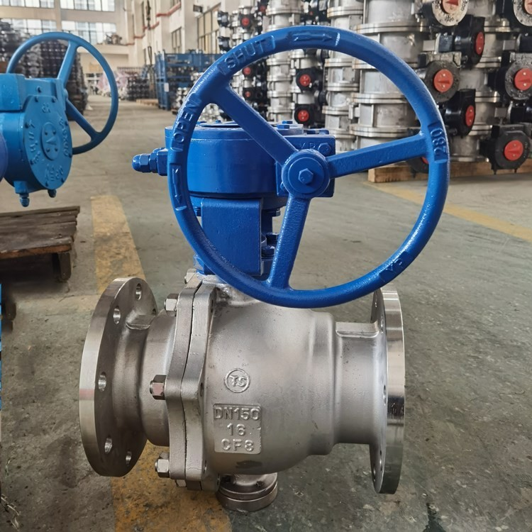 1關(guān)閉時,順時針旋轉(zhuǎn)手輪,閥桿開始下降并使球體離開閥座開始旋轉(zhuǎn)。
